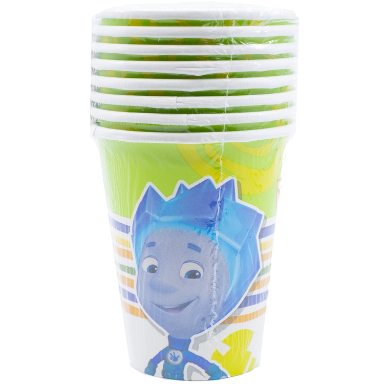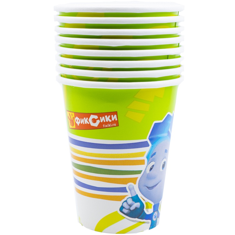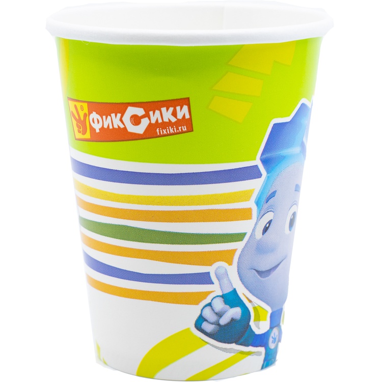 Бумажные стаканчики Фиксики объемом 270мл. На ярких стаканах деятельные забавные герои