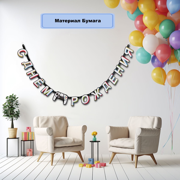 Товары для праздника, Украшения для праздника, Гирлянды, Праздник в стиле, Тематическая вечеринка, GAME ON