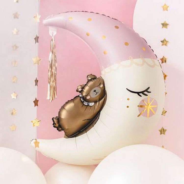 Фольгированный воздушный шар Мишка на луне с кисточкой золотого цвета, отличный вариант для оформления букетов, фотозон и детских комнат на тему Детские Грезы. Размер до надувания ок. 80 x 98 cm (31.5 x 38.5''), размер после надувания ok. 71 x 86 cm (28 x 34''). Можно надувать воздухом или гелием. В комплект входит соломинка.