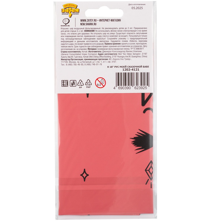 Шар изготовлен из тонкой миларовой пленки (фольга на полиэтиленовой основе). Шар имеет встроенный клапан, что упрощает надувание. Для надува рекомендуется использовать гелий.